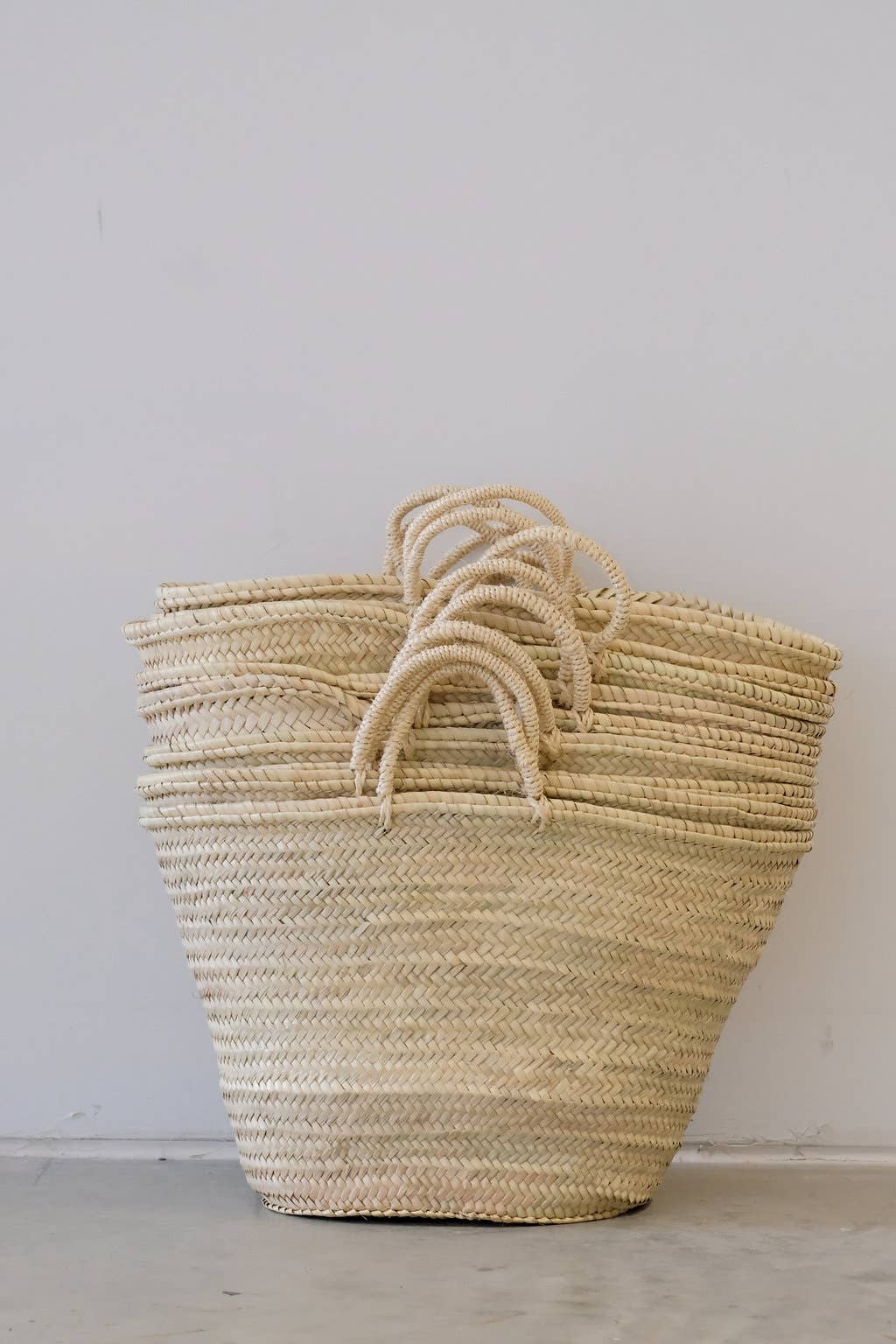 This sturdy woven basket is lightweight yet holds heavyweight. It's the perfect basket to keep in your car for the stylishly sustainable grocery store and farmer's market shopping. Take to the beach or build your own gift basket for the holidays. A perfect basket for any occasion.