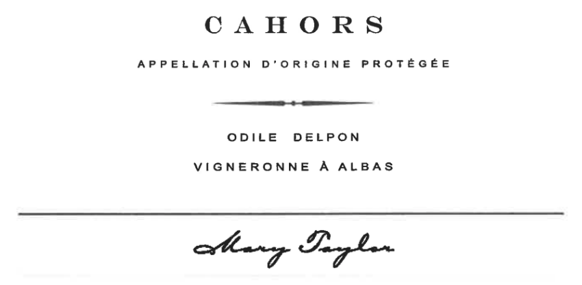From Mary Taylor Wine: Our thoughtful friend Didier Pelvillain is the winemaker here, although we list his mother Odile Delpon on our label, as 32 years ago it was she who planted these vines in the single parcel where our grapes are grown called “Inspiration 7.9.” This is one parcel of many which are speckled along the terraces hovering over the Lot River. Here the vines are trained as single guyot and we have only Malbec growing at a yield of about 50 hectoliters per hectare.